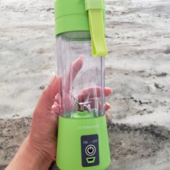 The best part about our blender? It’s small and portable (3 x 13 inches) — you can carry it with you anywhere. Plus, the blender, when detached from the blender chamber, doubles as a drink cup! No bulk makes this device great for camping trips, picnics, beach trips, and more.