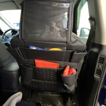 got this car back of seat organizer for our family road trips and it’s been amazing. the multiple pockets are perfect for holding toys, snacks, and books, keeping everything organized and within reach. it was really easy to install and fits securely on the seat. the material is strong and durable, standing up to constant use by my kids. it’s also very easy to clean, which is important for those inevitable spills. it stays in place and doesn’t move around, even when the car is in motion. this organizer has made our car rides much more organized and stress-free. highly recommend it for anyone with kids.