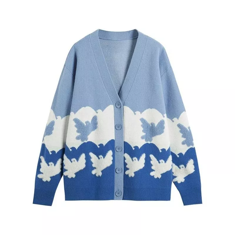 • Stylish Design: The chic pigeon pattern adds a fashionable twist to the classic cardigan.