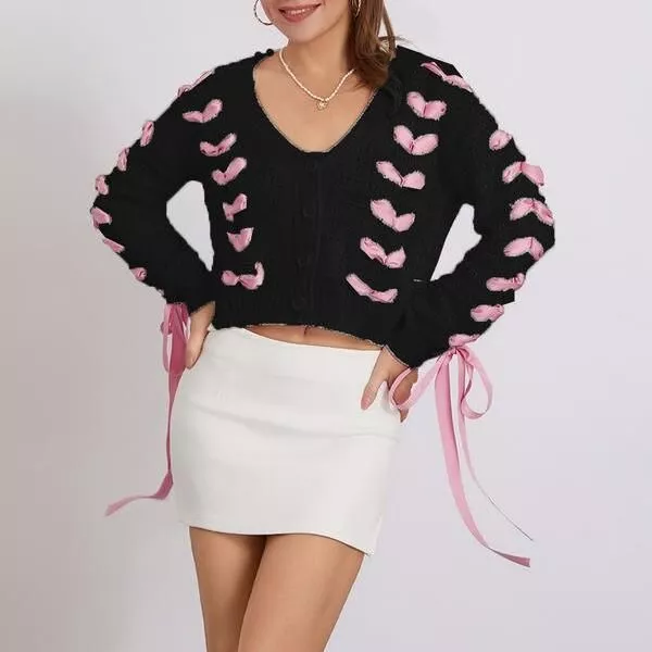 Whether you’re heading out for a casual coffee date or dressing up for an evening event, this cardigan is your go-to choice. Its short, cropped style pairs wonderfully with high-waisted jeans or skirts, making it perfect for both day and evening wear.