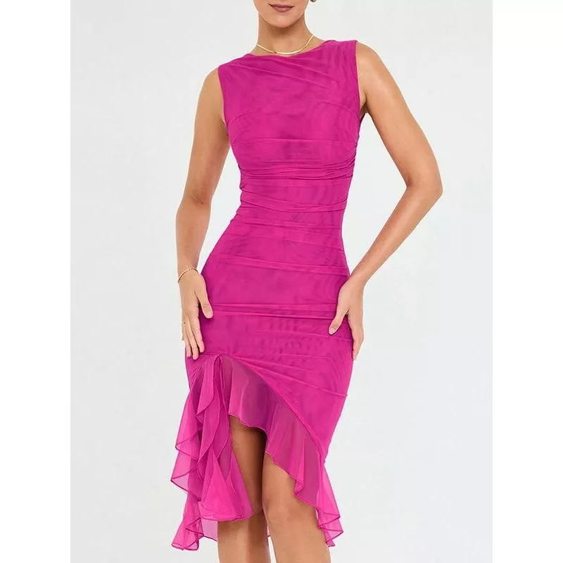 Step into the season with confidence in our Elegant Backless Ruffle Midi Dress. Perfect for middle-aged women who adore a blend of elegance and allure, this dress is your ticket to making a memorable statement at any club party or social gathering. Its sleeveless design and knee-length cut offer a chic yet comfortable fit, ideal for those warm spring and summer days.