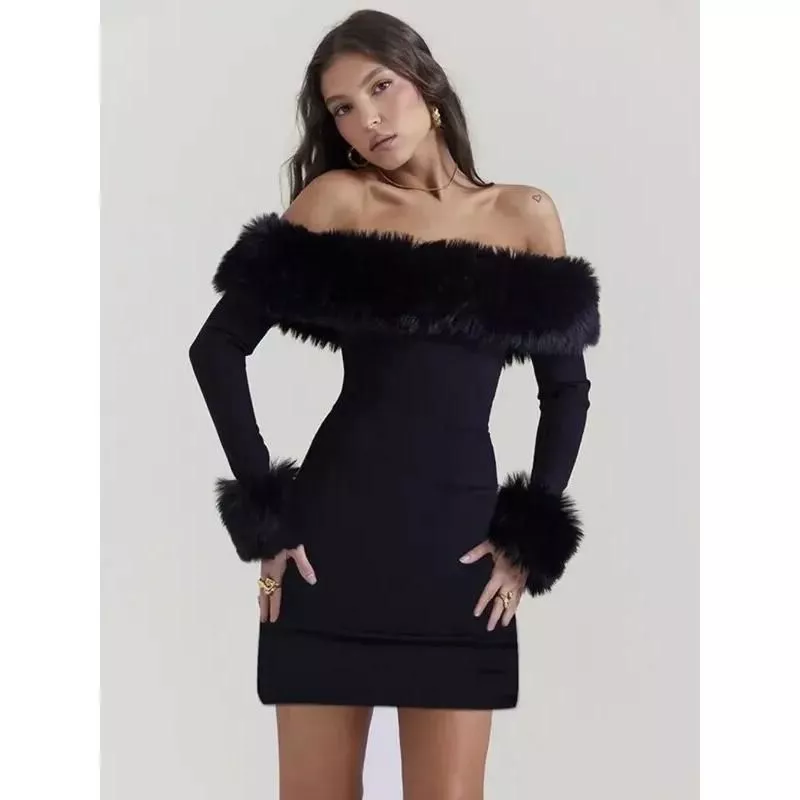 Introducing our latest addition to the world of high fashion – the Elegant Off-Shoulder Fur-Trimmed Bodycon Mini Dress from our Autumn 2023 Collection. Designed for the modern woman who adores sophistication with a hint of daring, this dress is a perfect blend of style and comfort. Crafted for those special evenings and upscale parties, it promises to make you the center of attention wherever you go.