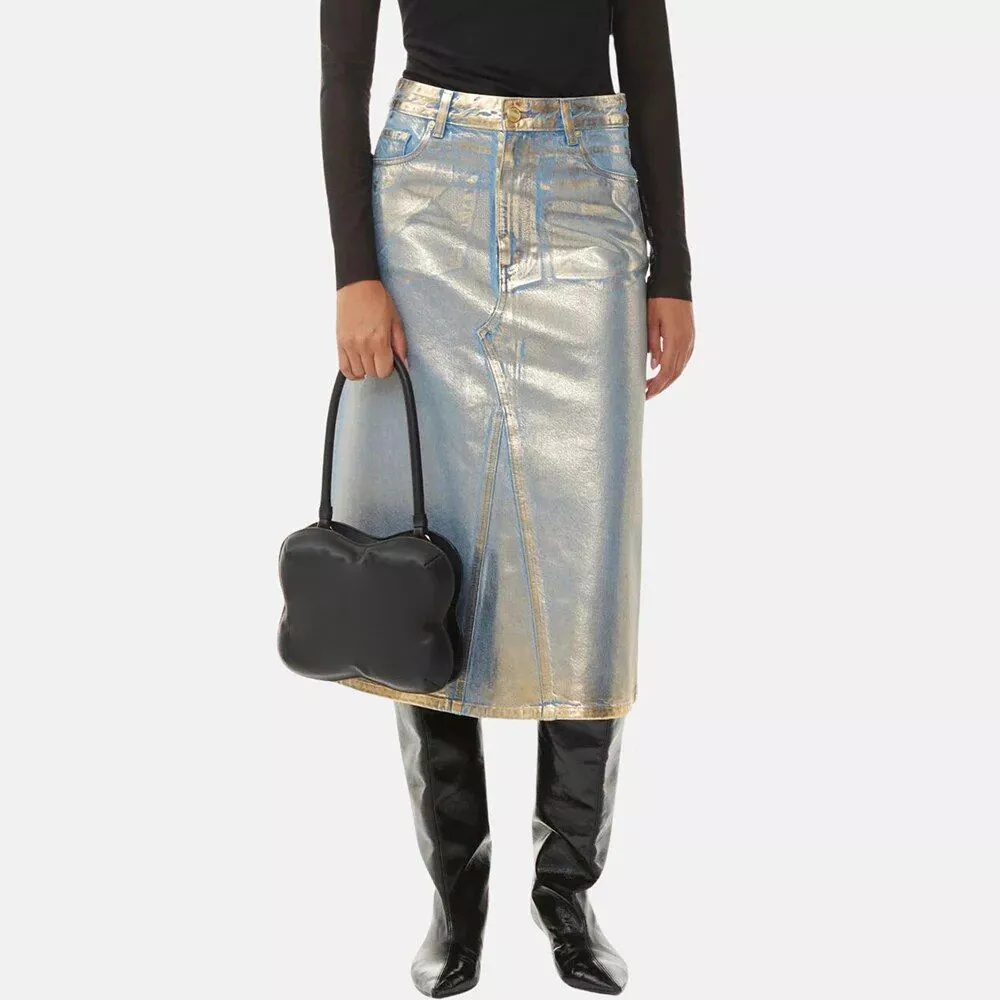 Upgrade your summer wardrobe and embrace the fashion-forward design that sets you apart. Make a statement. Be bold. Be effortlessly chic with our Glossy Minimalist Denim Skirt.