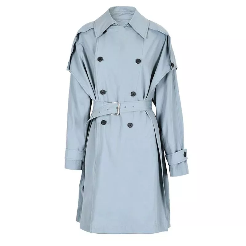 Step into the world of classic fashion with our Elegant Gray Blue Bat Sleeve Trench Coat, a must-have for every woman’s wardrobe. Blending the sophistication of a traditional trench coat with the unique flair of a cape shawl, this exquisite piece is perfect for those who appreciate minimalist elegance with a touch of uniqueness.