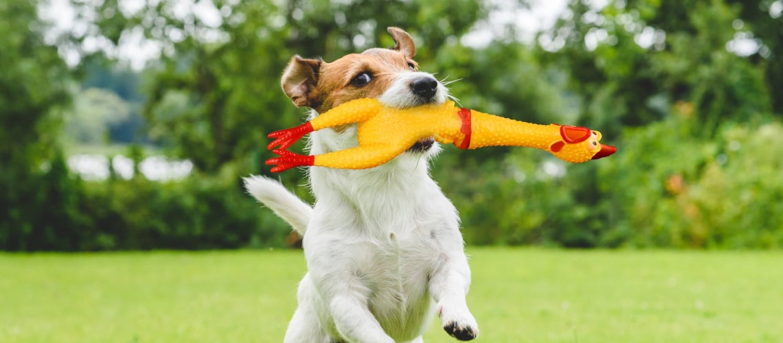 My dog loved it at first, but the squeak/squawk wore out within only 2-3 days. It now sounds like it has laryngitis and barely makes a noise at all. He was also able to pull the two halves apart pretty easily. They popped back together, but I'm not sure why it is designed to pop apart to begin with? Overall, I wouldn't recommend this unless it's just for a quick prop or something that you don't need to function for very long.