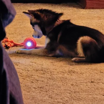 The Interactive Motion Activated Dog Ball is a brilliant product indeed! It’s suitable for various floor types which means we can use it anywhere in our house without any issue. My chihuahua enjoys both the fast running (blue light) mode and slow running (purple light) mode equally well.