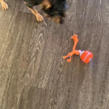 Our terrier absolutely adores his new toy! This automatic rolling ball doesn't just roll around aimlessly but interacts with him in such an engaging manner. The chirping bird sound stimulates his senses and keeps him curious all the time. Not to mention those two long tails attached to the ball add more fun as he loves chasing them around!