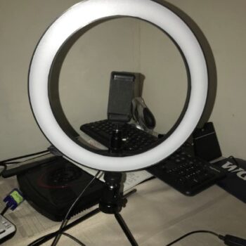 The head on the ring light is front-and-back adjustable at 180 degrees through a fixed knob, allowing you to angle your lighting when needed.