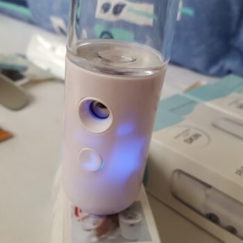 Each Nano Anti-Aging and Hydrating Facial Sprayer contains a built-in 400mAh lithium polymer battery that is rechargeable with a USB cord (included in your purchase). Fully charge up in three hours for a ready-to-use skin booster. Note spraying will stop if water or essence in the water tank runs out.
