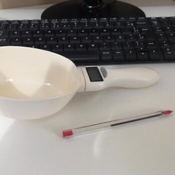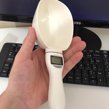 Our electronic scoop measures 9.1 x 3.7 in (23 x 9.5 cm) in totality, while the scoop measures 4.3 x 2 in (11 x 5 cm). The compact size makes it easy to store in your pet’s food bag or away in a drawer of items designated for your dog or cat.