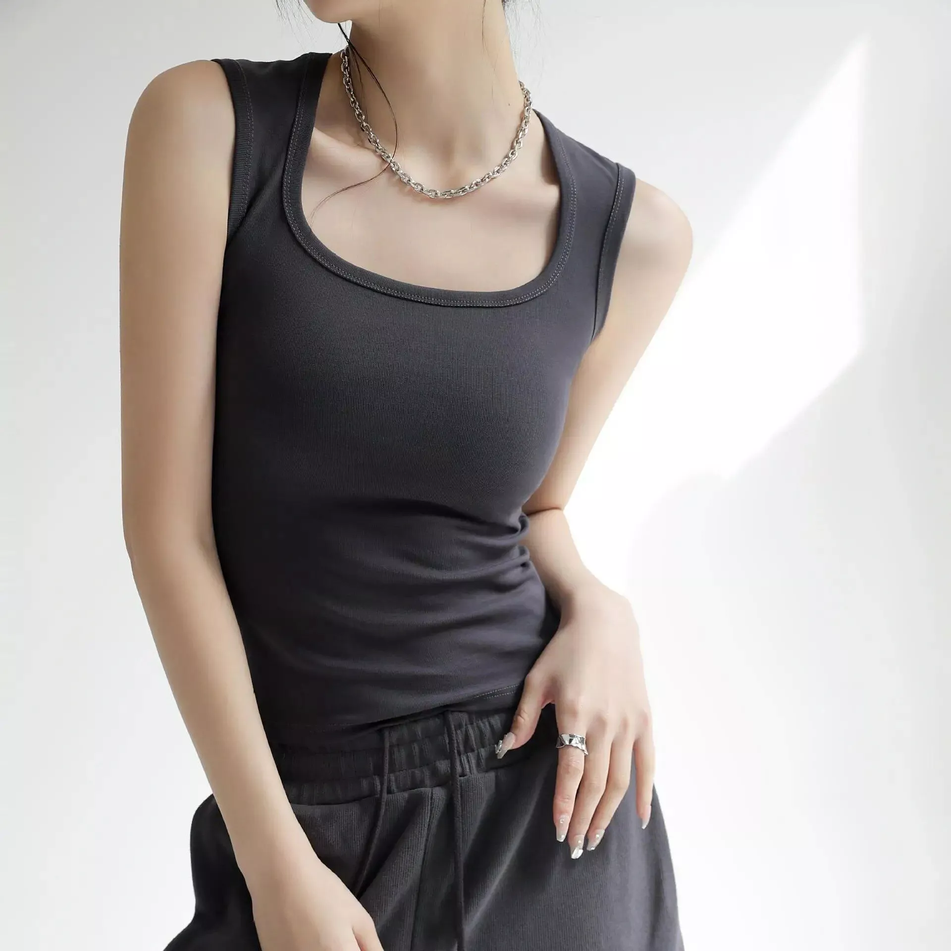 Elevate your summer wardrobe with our Ribbed Crop Top – a stylish and sleeveless stretch basic camisole designed for the hot and sexy fashionista in you. Perfect for classic spring outfits, this versatile piece is a must-have for every woman’s collection.