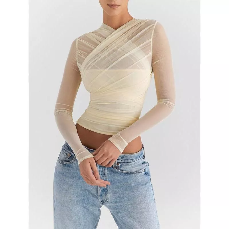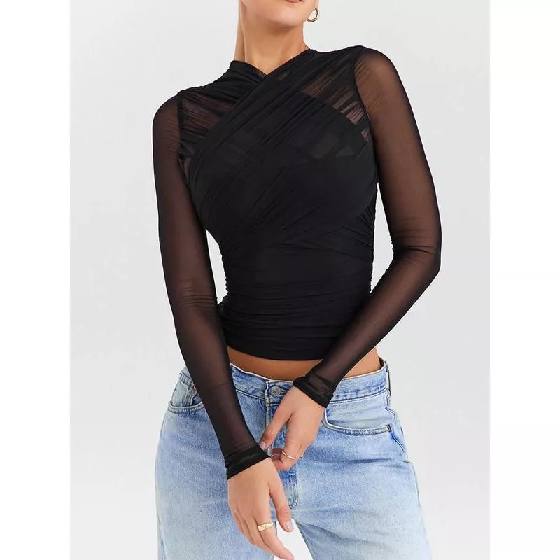 Step into the spotlight with our Sheer Mesh V-Neck Long Sleeve Sexy T-Shirt. Perfect for those who love to blend classic style with a touch of daring, this top is a must-have for your Autumn/Winter wardrobe. Crafted for the modern woman, it’s not just a piece of clothing; it’s a statement of confidence and allure.