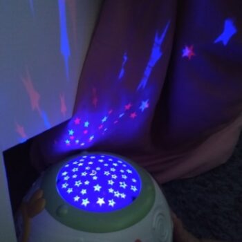 I bought this for my nieces (ages 1, 3, and 4) who do a lot of traveling with their family. Because the three girls are so young and have an ever changing place to sleep/stay, I thought this would be a good ‘constant’ in their bedtime routine. Even if they’re at someone else’s house or in a hotel, they can always count on seeing the star lights above their head at nighttime. It works great and I’ve been extremely happy with the purchase! The girls love it!