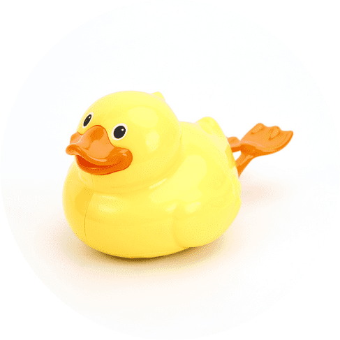 You can put 2 AA batteries in the toy so the duck’s feet will move. It will make it swim around the bath like a real duck! It will excite any kid.