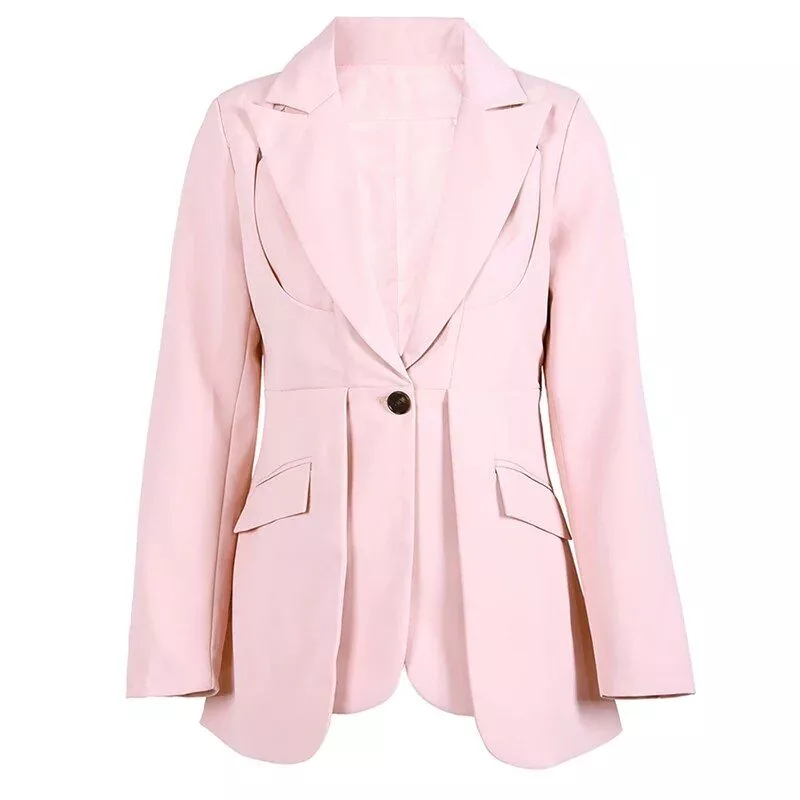 What sets our blazer apart is the attention to detail in its design. The unique spliced folds add a modern twist to the classic notched collar, creating a garment that is both trendy and timeless. The solid color and regular clothing length make it a versatile piece that can be paired with a variety of bottoms. The quality polyester material ensures durability, meaning this blazer will be a staple in your wardrobe for years to come.
